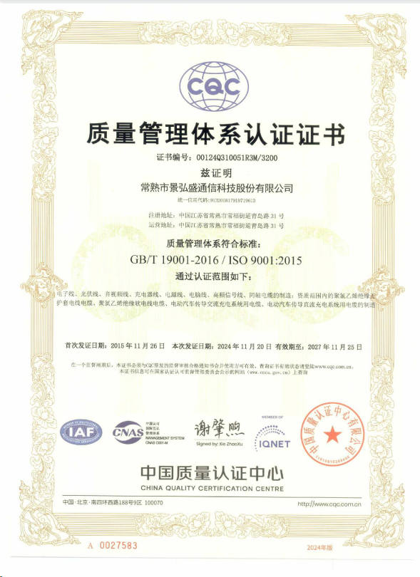 ISO 9001質量管理體系證書